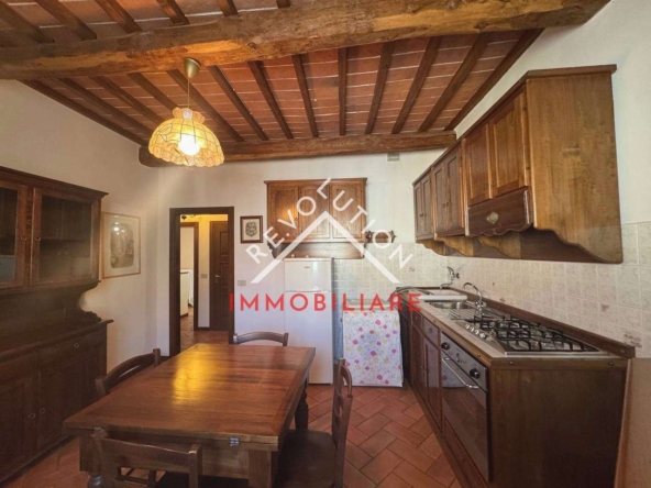 L’ingresso si apre su una cucina abitabile, accogliente e funzionale, con uno splendido camino in mattoni e muratura, perfetto per creare un’atmosfera calda e suggestiva nelle serate invernali.