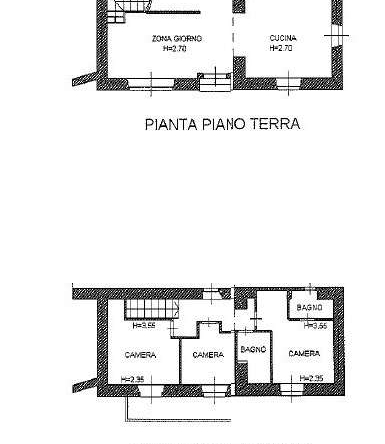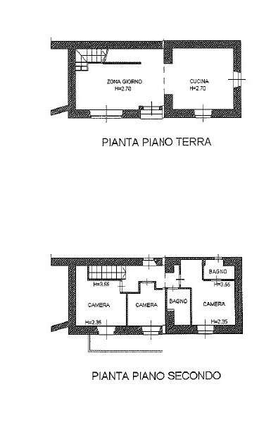 Al primo piano, accessibile tramite una scala in parquet, sono presenti tre camere da letto di cui due matrimoniali e due bagni moderni di cui uno in camera.