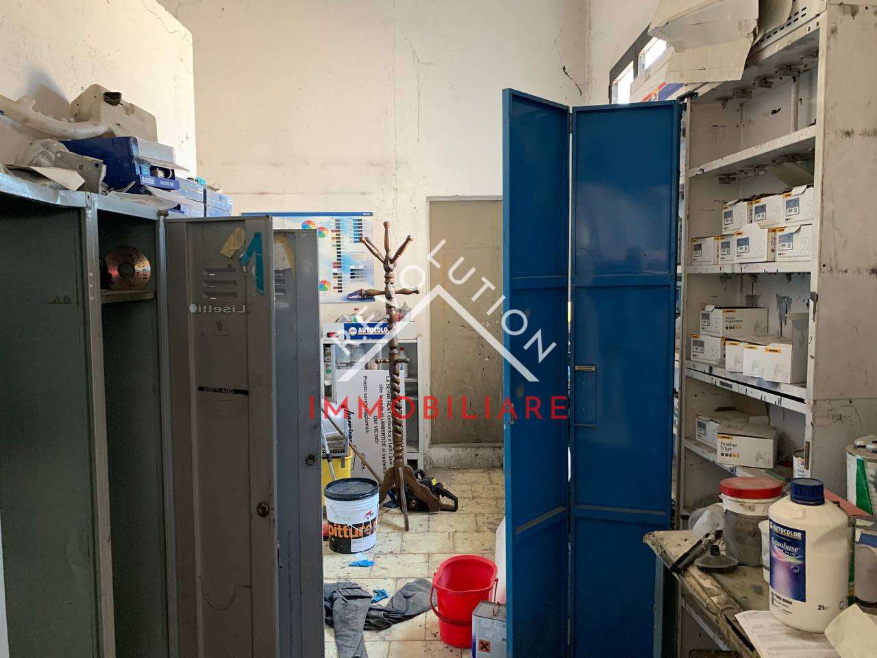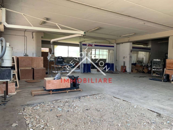 L’edificio internamente è composto da un ampio vano, un ripostiglio e un WC, ed è dotato di grandi vetrate ed uscita di sicurezza. Precedentemente il capannone è sato utilizzato come laboratorio per carrozzeria e officina auto.