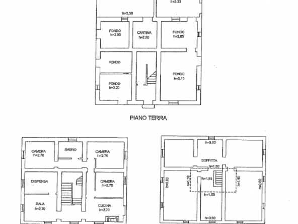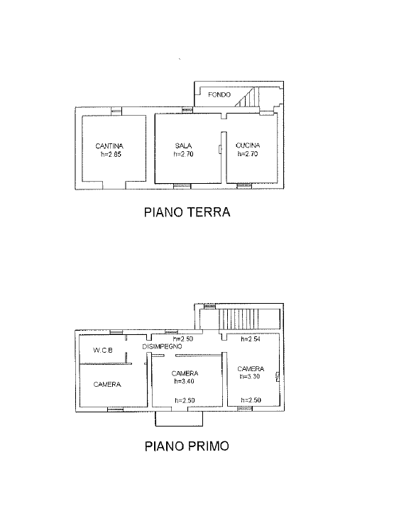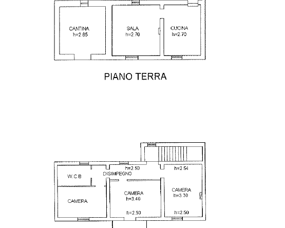 Il secondo immobile si eleva su due livelli ed è composto al piano terra da un piccolo ingresso con vano scale, disimpegno, cucina abitabile, soggiorno e cantina. Al primo piano si trovano 3 camere di cui una con terrazzo ed un bagno.